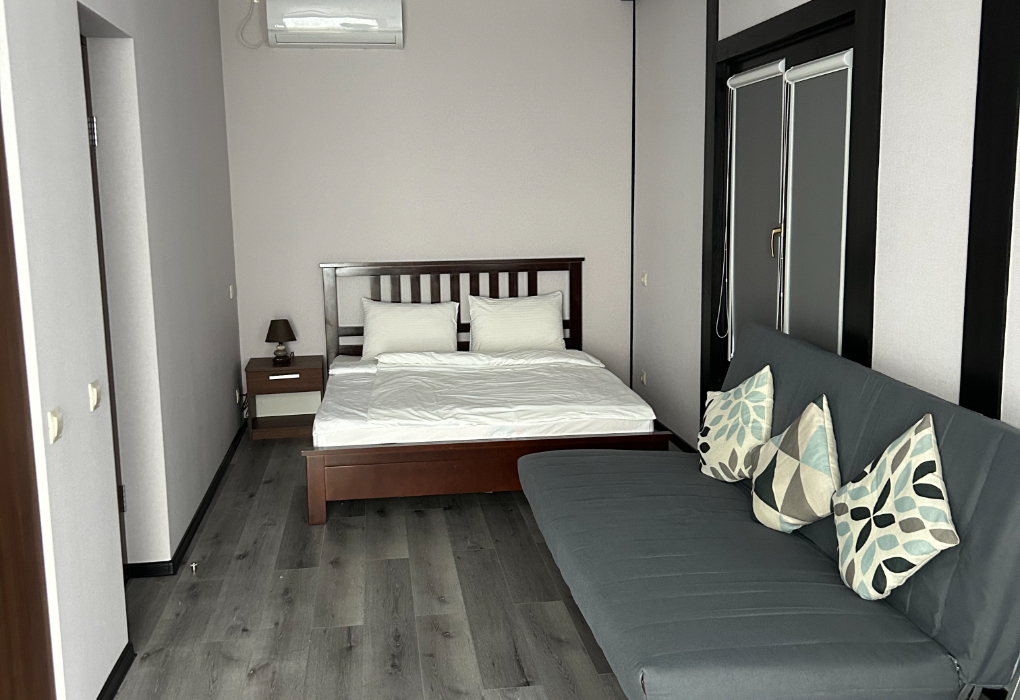 Площадь номера - 30 кв.м. 1 комната. 2 осн. места. В номере: телевизор; кондиционер; душ; туалет; фен; 2-спальная кровать; мини-холодильник; чайная станция. 2 доп. места: